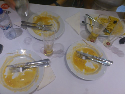 (A minha torrada acabpu de saltar para fora e está toooodaaaa esturrada!) - Ora, a nossa viagem começou pela descida até ao Altentejo onde fomos passar uns dias com um grande amigo nosso. Évora (embora já lá tenha estado duas ou três vezes) nunca deixa de surpreender por alguns recantos e algumas surpresas que se encontram por lá... E pela quantidade de museus que tem! Fomos andar de coche pela baixa com dois cavalinhos muito lindos e um sr tipicamente alentejano que nos foi guiando pela cidade (embora o nosso amigo já o tivesse feito e ia fazendo à medida que íamos passando pelo património mais carismático). Andamos umas boas quatro horas a pé pela cidade, a conhecer-lhe os recantos até que decidimos ir almoçar. A única vez que fomos almoçar fora e que valeu mesmo a pena: das entradas saliento, as azeitonas, o pão alentejano, o queijo serrano e uns cogumelos com pesto de coentros divinal (estava tão bom que nos esquecemos de tirar foto :O); do prato principal, secretos de porco com migas de espargos acompanhadas com uma caneca de 40cl de sagres. Eh pá, foi mesmo do caneco comer aquilo tudo e beber tudo por cima! Como devem calcular, saímos do restaurante pela hora de mais calor, a rebolar e tínhamos uma rua gigante para subir. Lá conseguimos chegar, e partimos à descoberta do que restava ver. Ao final da tarde e porque o nosso amigo mora num condomínio com piscina... Fomos dar um mergulho que soube mesmo bem depois de 6h de caminhada e um repasto daqueles.