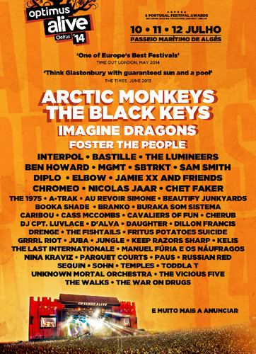 Primeiro ano que vamos inteirinho ao festival. Vai ser de arromba! Os meus Artic Monkeys, 10 anos depois de os conhecer! Os Black Keys, música indispensável do meu dia a dia! E tooooodos os outros que nem dá para enumerar. Este festival sempre me trouxe boas coisas, muitas bandas novas, waffles maravilhosas e boa companhia. Férias & festivais, that's the life.